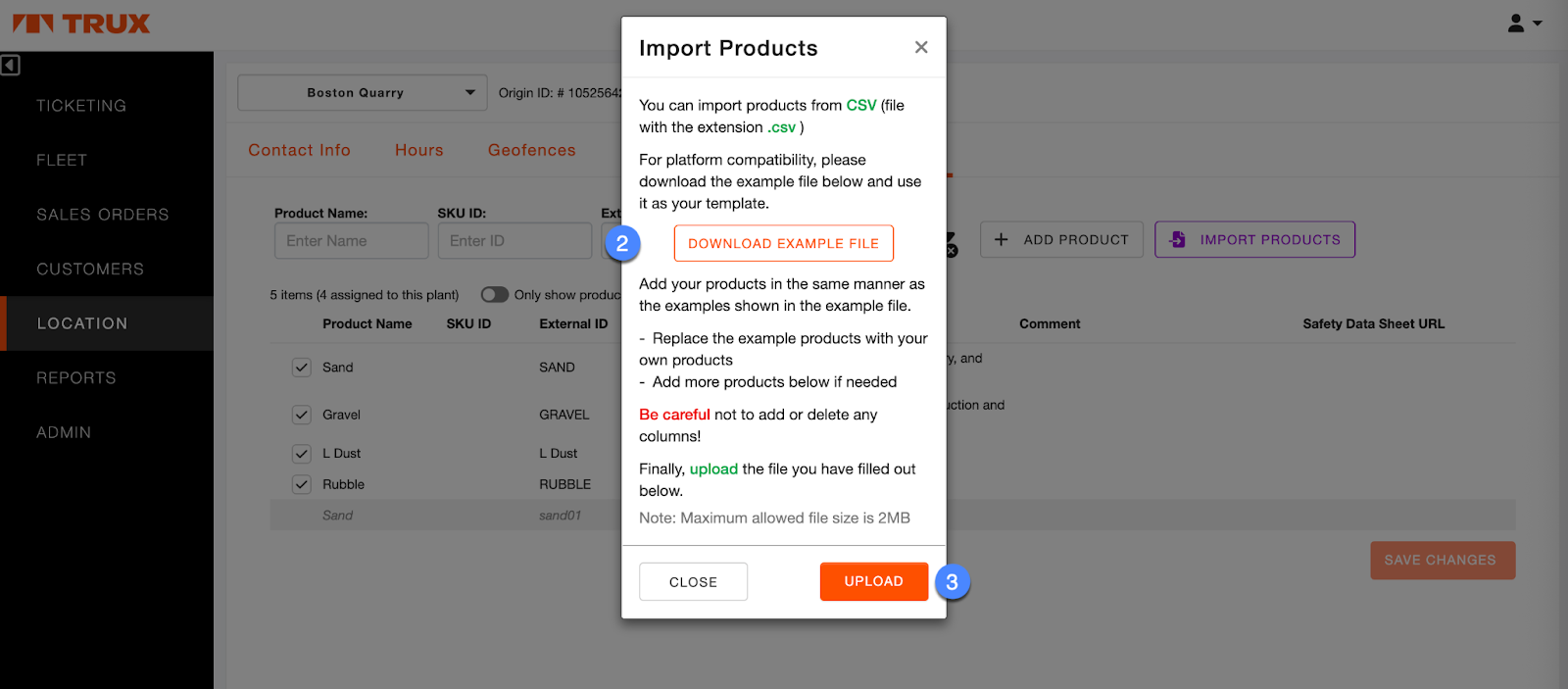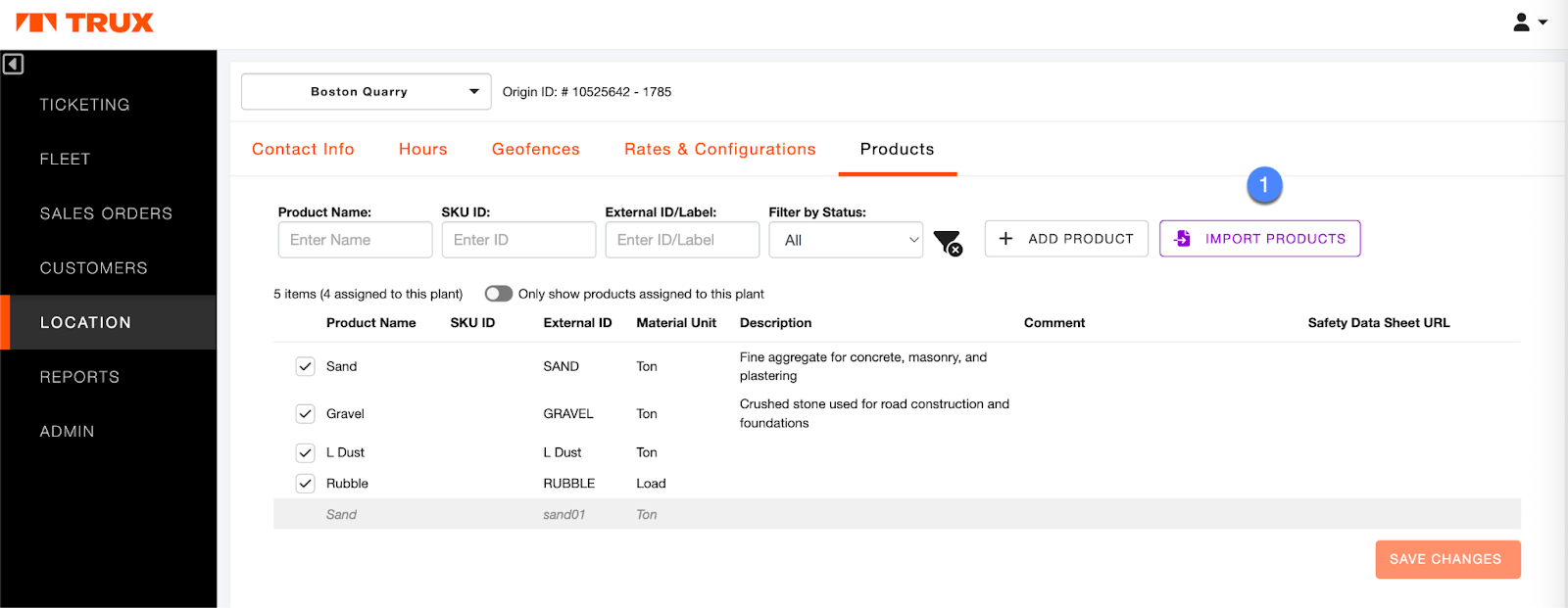 - Click IMPORT PRODUCTS from the Products tab on the LOCATIONS screen.