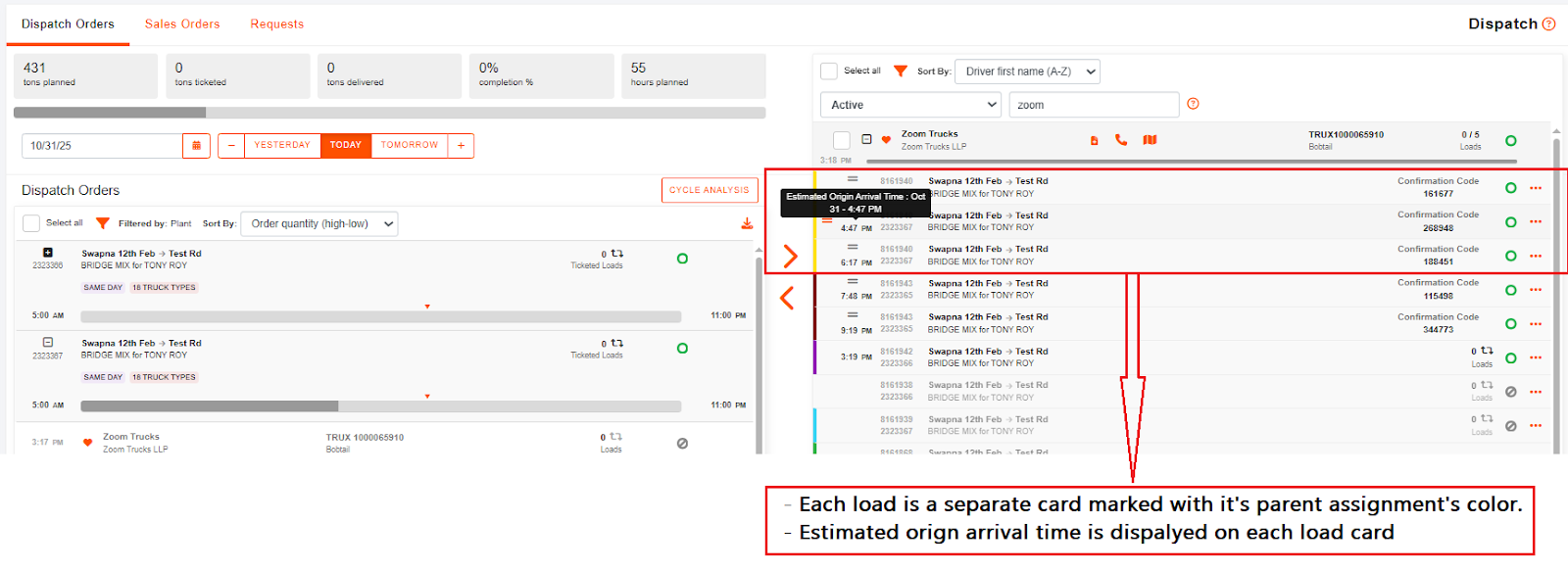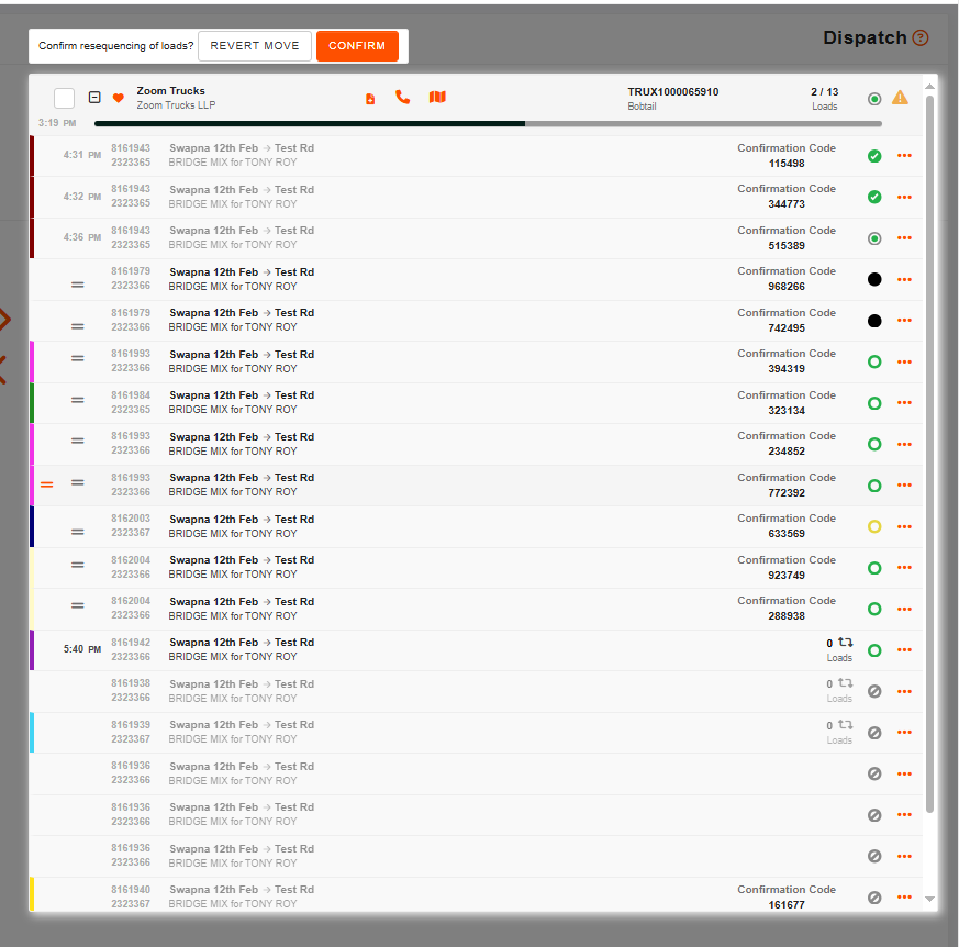 - Allows dispatchers to reorder individual loads across assignments for the same hauler